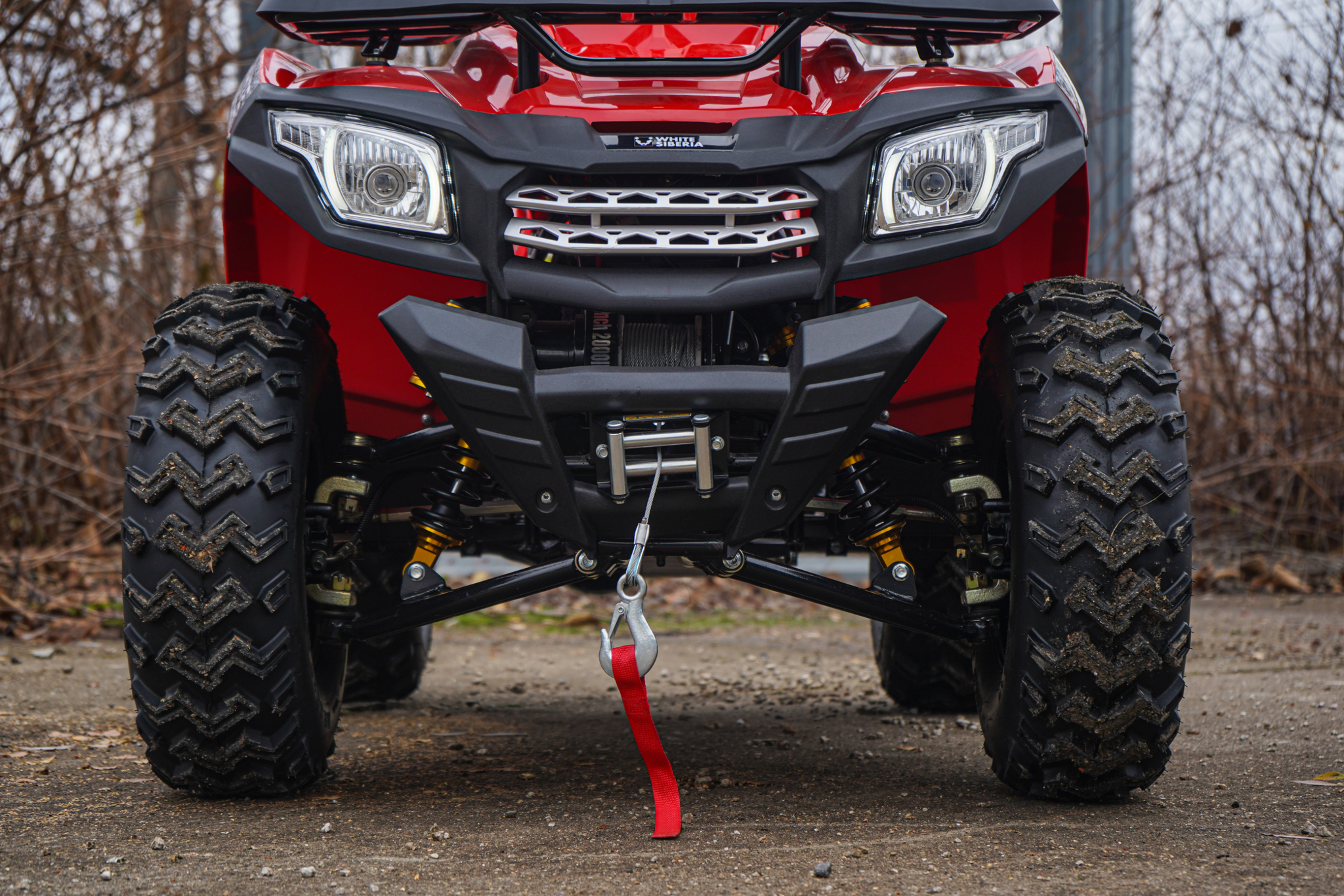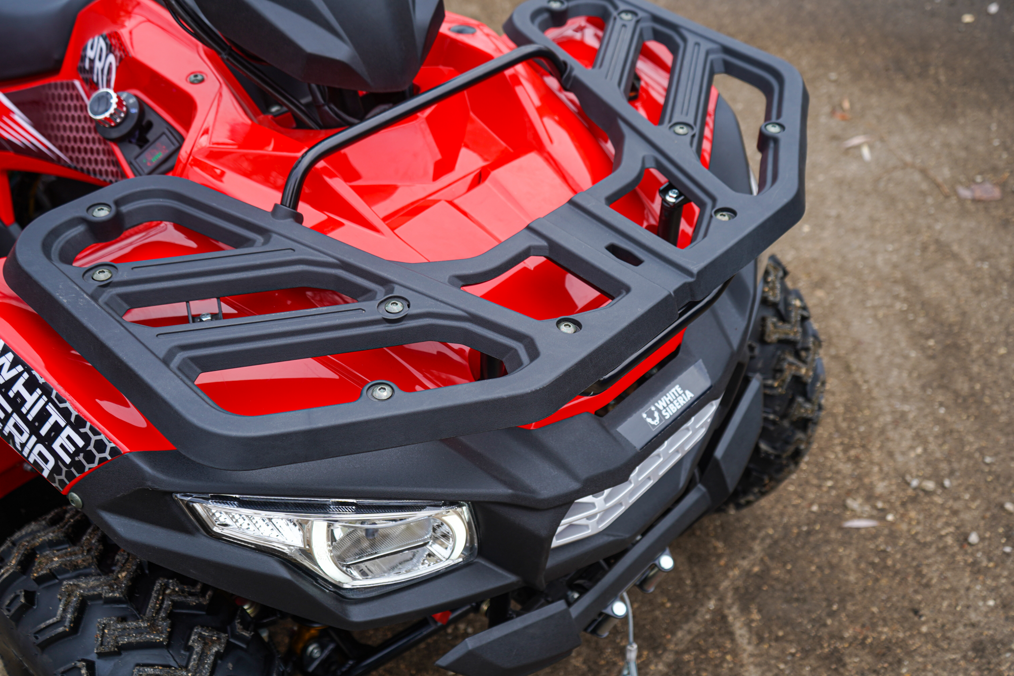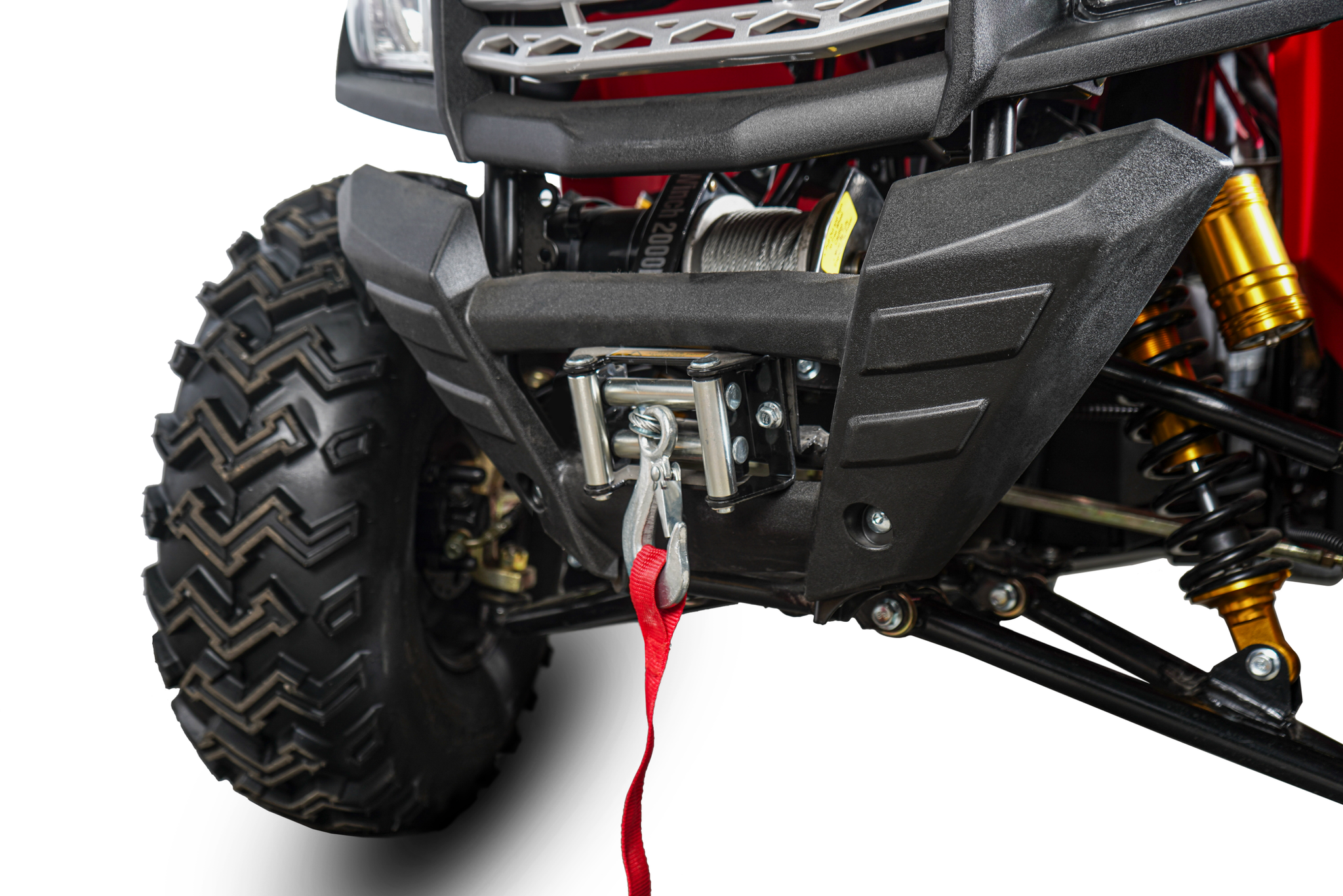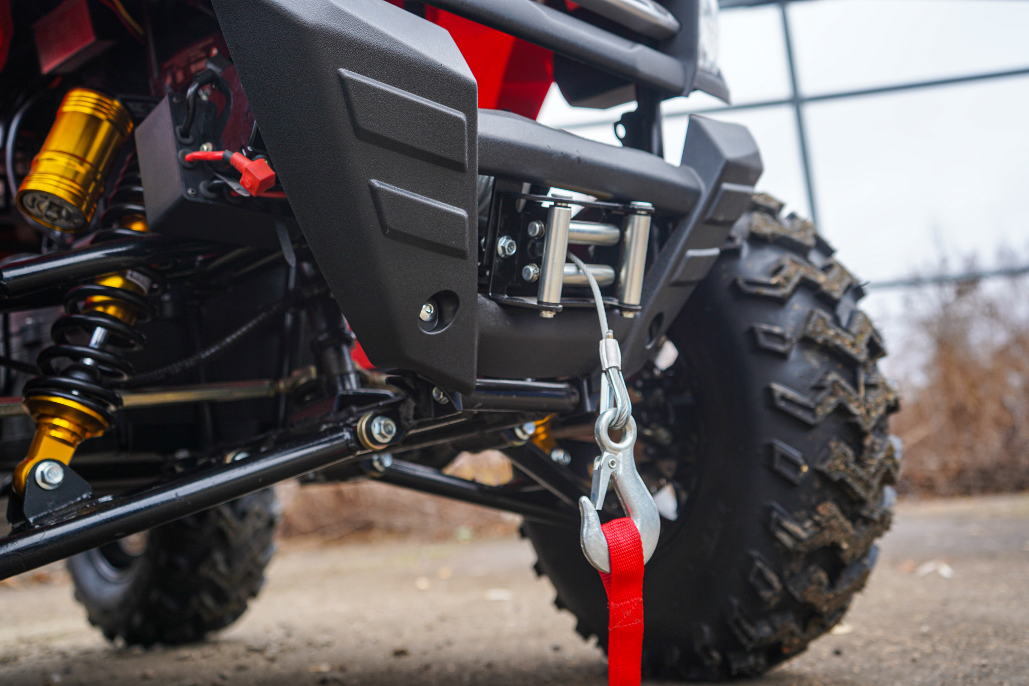 Данный квадроцикл электрический, сравним с бензиновыми квадроциклами 200CC. Предназначен для передвижения за городом, лесным прогулка и легкому бездорожью. Его можно смело использовать на рыбалке для буксирования лодки на прицепе общей массы до 1Т и до 1.5Т по прямой – для этого в базовой комплектации идет уже фаркоп. Так же, если вдруг где то застряли, нужно забраться на высокий и крутой подъем, да и просто вытащить лодку из воды, можно использовать лебедку с пиковой нагрузкой 900кг которая так же идет в базовой комплектации.