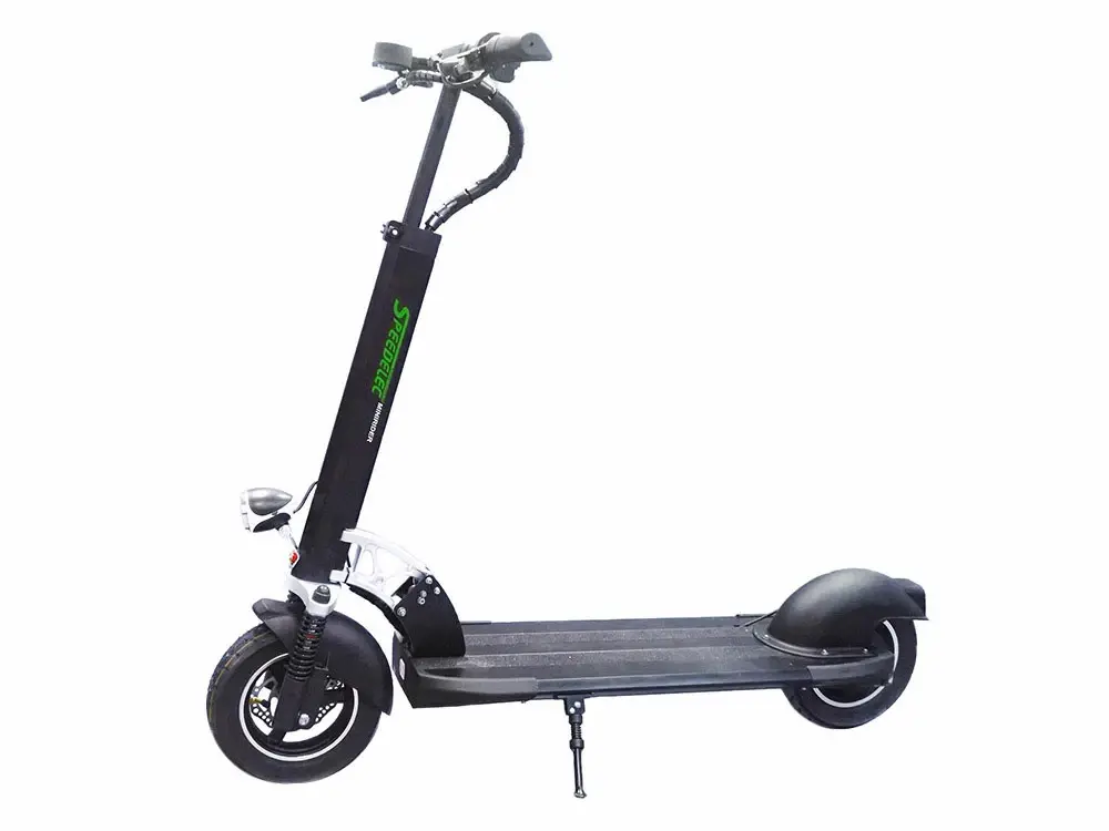 Электросамокат E-motions Speedelec minirider – новинка модельного ряда 2017 года. Многофункциональный электрический самокат с продуманной эргономикой и стилем обладает отличными ходовыми характеристиками. Заднее редукторное мотор-колесо мощностью 600 Вт и литий-ионный аккумулятор (52 В, 21 Ач) наделяют транспортное средство максимальной скоростью до 60 км/ч и запасом хода на одном заряде до 70 км. Колоссальные показатели! Вес устройства значительный – 20,8 кг, но и грузоподъемность внушительная – до 150 кг. С такими показателями девайс отодвигает на задний план автомобиль.