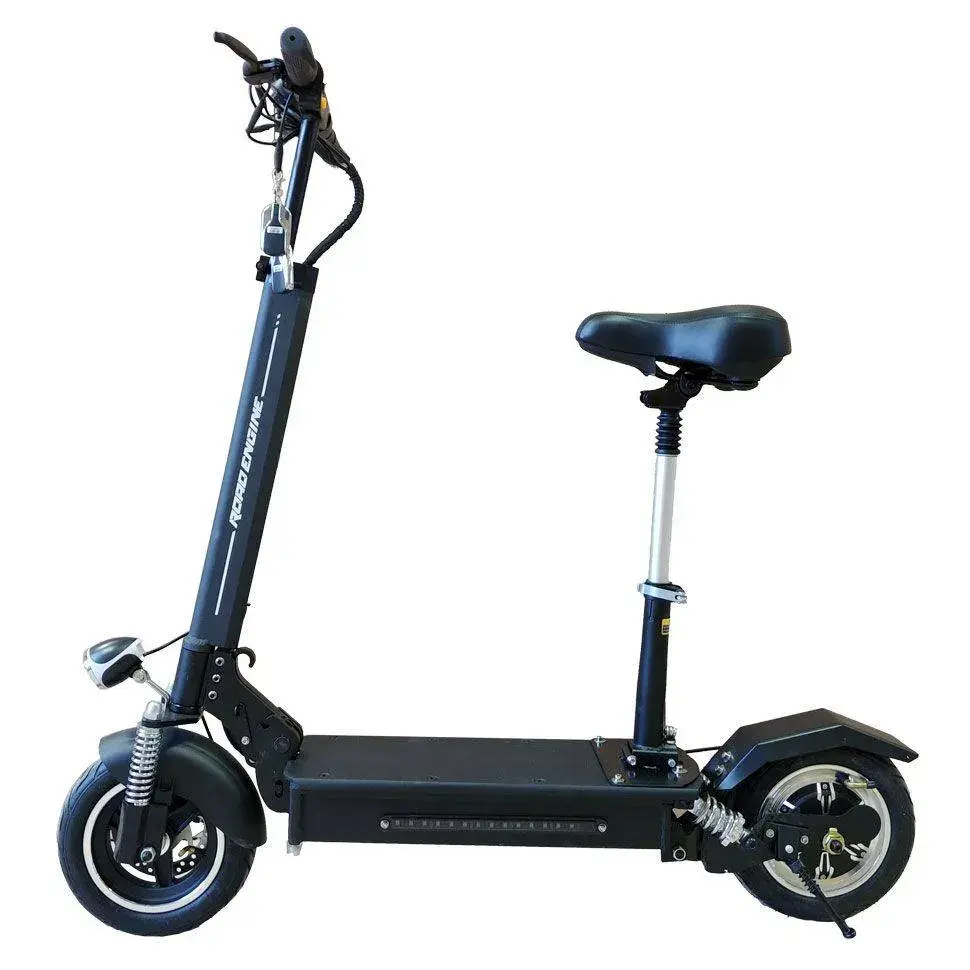 Электросамокат BL-380 48V 800W 20Ah укомплектован мягким седлом с амортизирующим подседельным штырем, которое по желанию можно прикрепить на платформу. Поездки и сидя, и стоя комфортны благодаря широкой деке. Рулевая стойка настраивается под рост пассажира, а общая грузоподъемность составляет 120 кг, поэтому возможность прокатиться есть у всех желающих. Транспортировку и хранение самоката упрощает складной механизм.