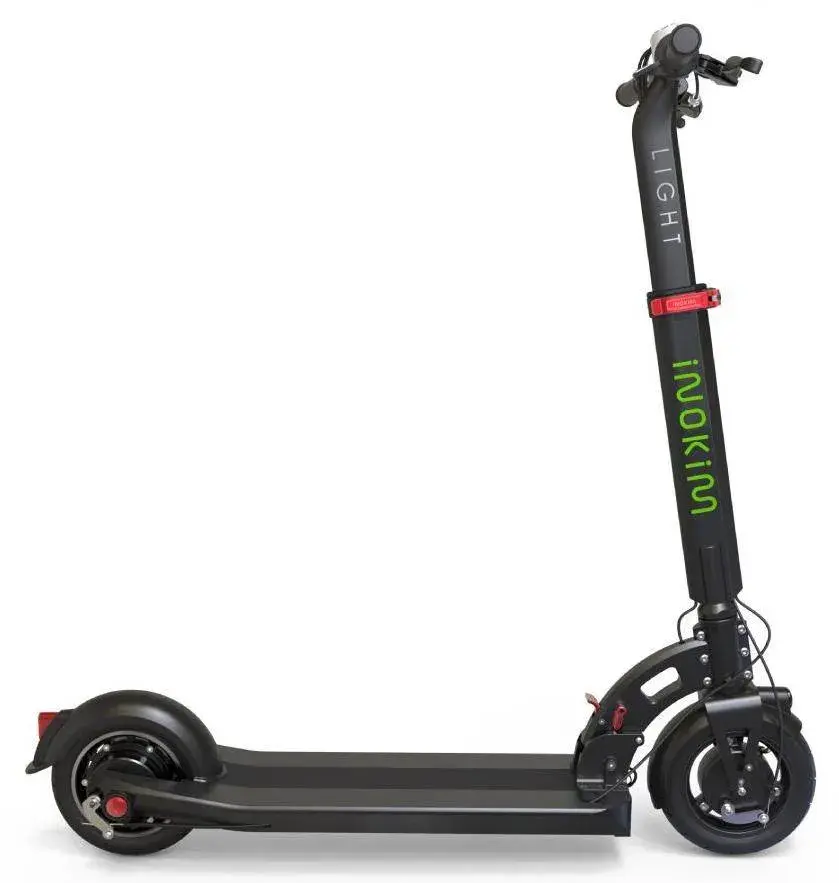 Складная рама и небольшой вес 13 кг, позволяют удобно транспортировать Inokim Light 2 или хранить его дома. Обратите внимание, что в электросамокате складывается не только рама, но и ручки руля. Электросамокат Inokim Light 2 оснащен тихим мотором мощностью 300 Вт. В пике этот мотор выдает 600 Вт. Максимальная скорость самоката составляет 35 км/ч. Благодаря батарее LG емкостью 10.4 Ач, на одном заряде вы можете проехать до 40 км.