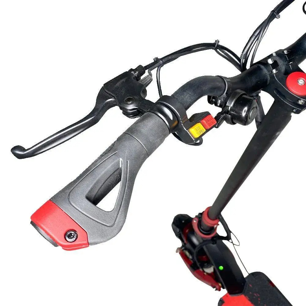 Электросамокат оборудован дисковыми тормозами спереди и сзади, а также регулируемой подвеской для комфортно при агрессивной езде. Богатая система освещения осветит путь в прогулки в темное время суток и обезопасит от аварийный ситуаций.