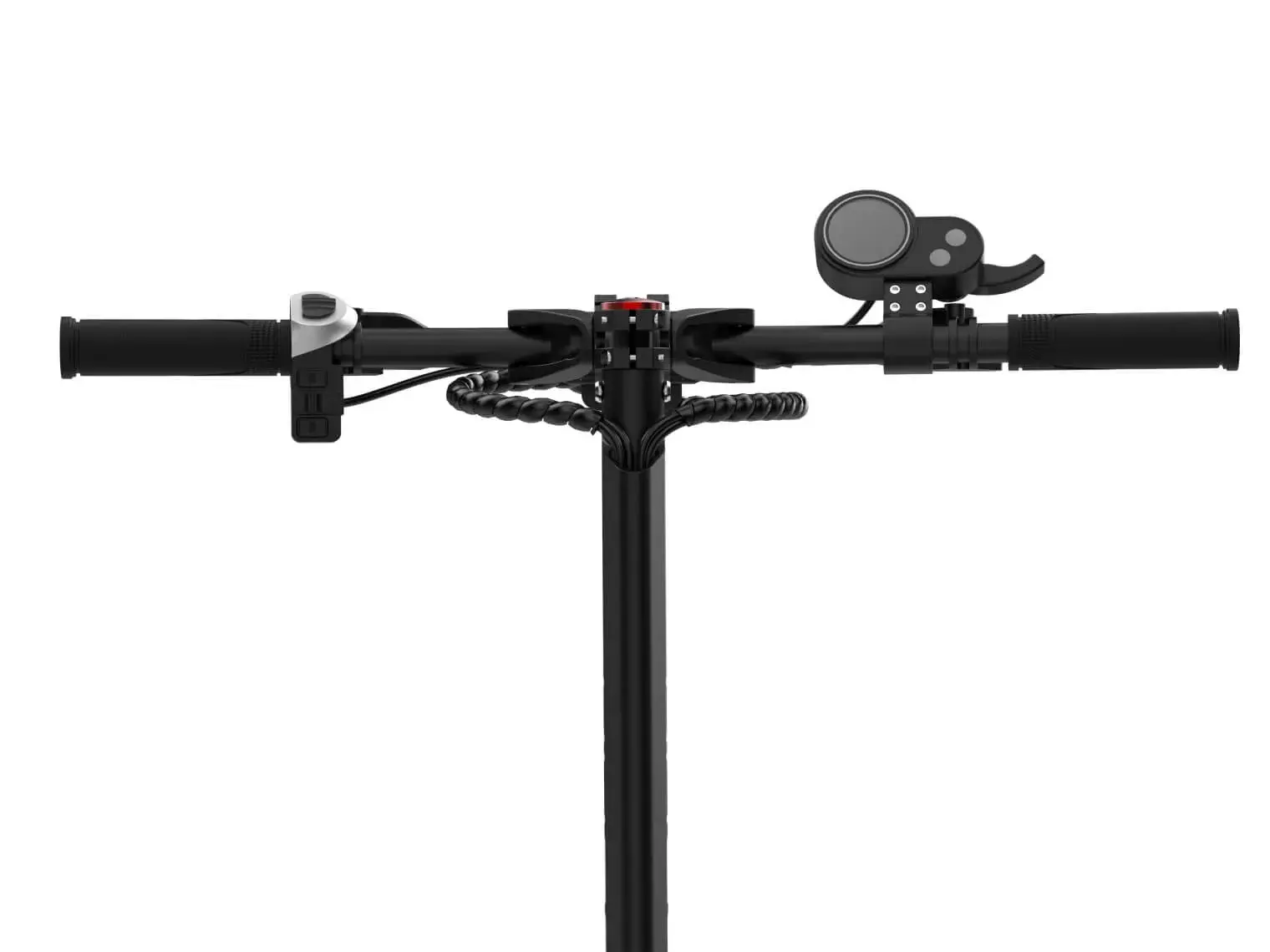 На руле расположены основные элементы управления в виде ручек газа/тормоза, вольтметра, а также информационного дисплея, на котором райдер может отслеживать скорость в реальном времени, пройденный путь и оставшийся заряд батареи. Для езды в тёмное время суток спереди установлена яркая светодиодная фара. От попаданий брызг грязи и пыли, водителя защитят широкие крылья, которые установлены спереди и сзади. Самокат имеет удобную подножку для парковки.