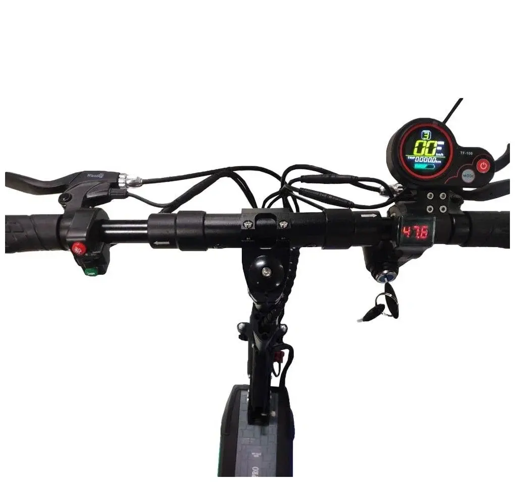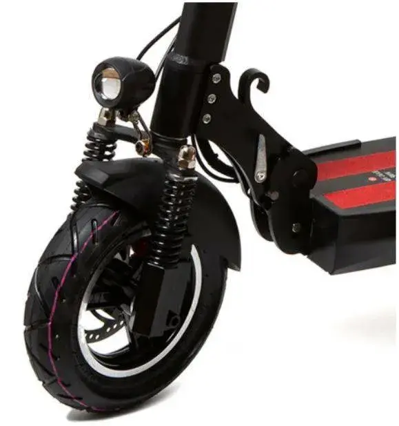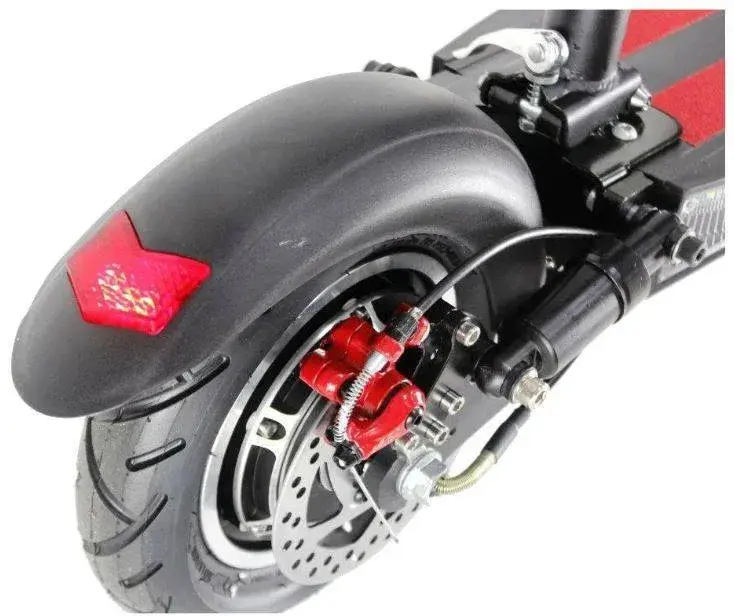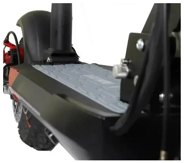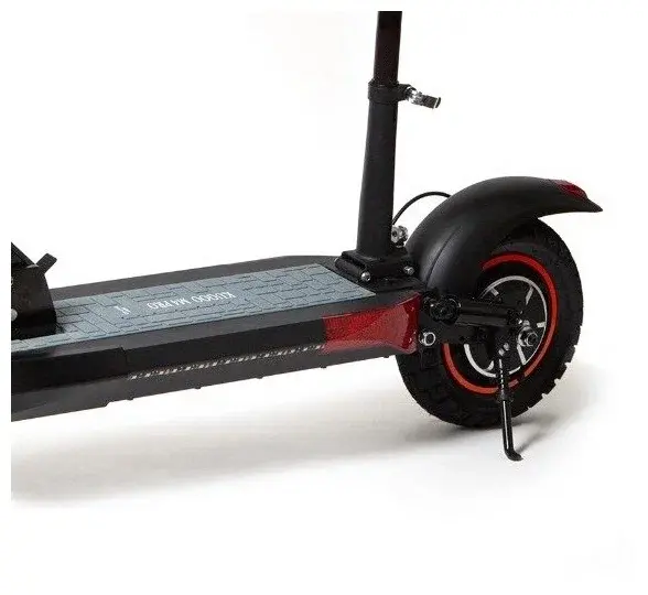 Для безопасной езды электросамокат имеет два дисковых тормоза спереди и сзади, мощный передний фонарь, задние фонари и поворотники. Колеса 10 дюймов с внедорожными покрышками дают максимальную сцепку с дорожным покрытием. Анатомические прорезиненные грипсы на руле и большой многофункицональный дисплей делают управление девайсом максимально комфортным.