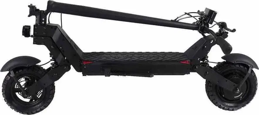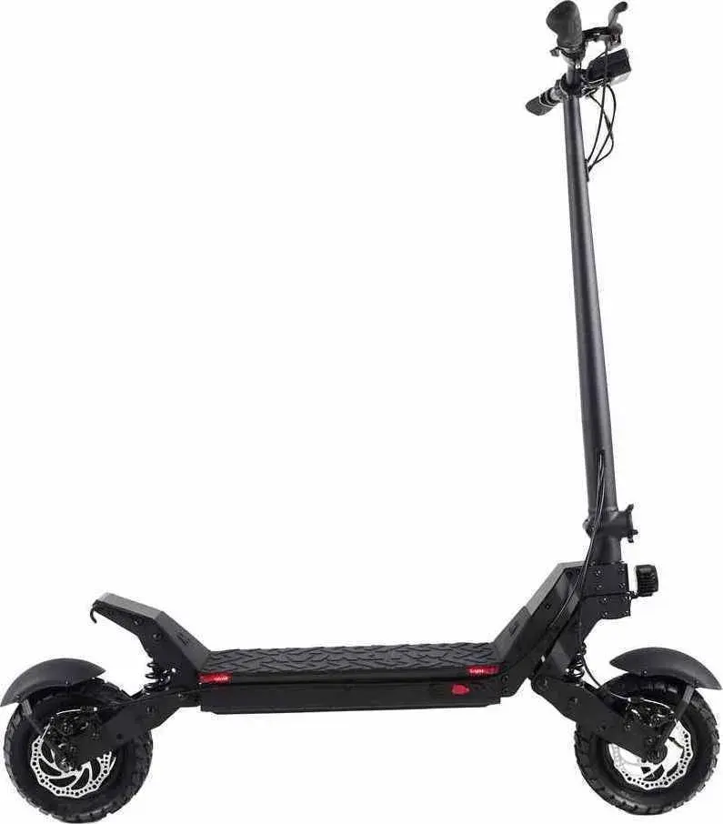 Электрический самокатзаднеприводный. Оборудован мотор-колесом номинальной мощностью 1000W, благодаря чему транспорт разгоняется за считанные секунды до 50 км/ч. Такого двигателя хватит, чтобы забираться в горки под углом 20 градусов. Аккумуляторная батарея встроена в деку и имеет стандарт защиты от пыли и влаги IP54. Ёмкость АКБ 48V 18Ah позволит проехать расстояние до 55 км на одном заряде. Время полного заряда батареи 4-6 часов.