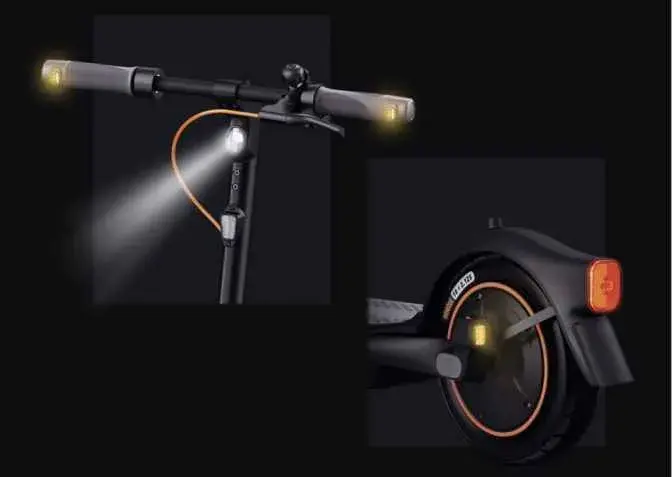 Впервые на городском электросамокате от Segway-Ninebot — сигналы поворота. Спереди сигнальные огни органично встроены в рукоятку, сзади — расположены на раме.