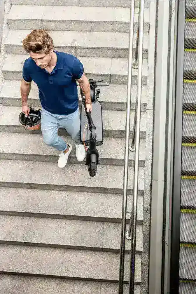 Самокат складывается в три приёма — идеальное решение для переноски и хранения.