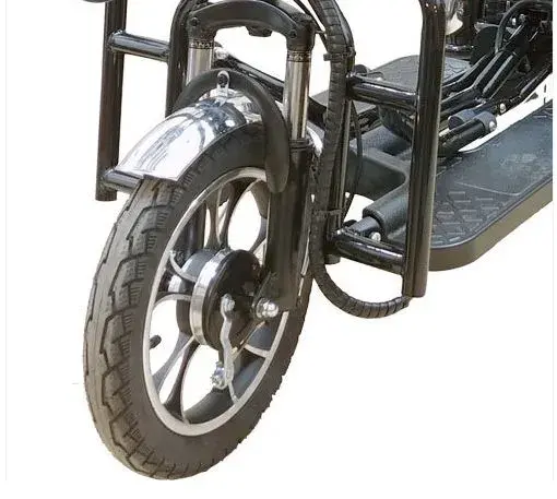Лучшая устойчивость достигается оснащением модели тремя 14 дюймовыми колесами. Модель смотрится дерзко и брутально. Комбинированная рама из прочной стали и авиационного алюминия выдерживает нагрузку до 120 кг. Высокий дорожный просвет 14 см и вилка на жестких амортизаторах позволяют свободно преодолевать любые дорожные помехи.