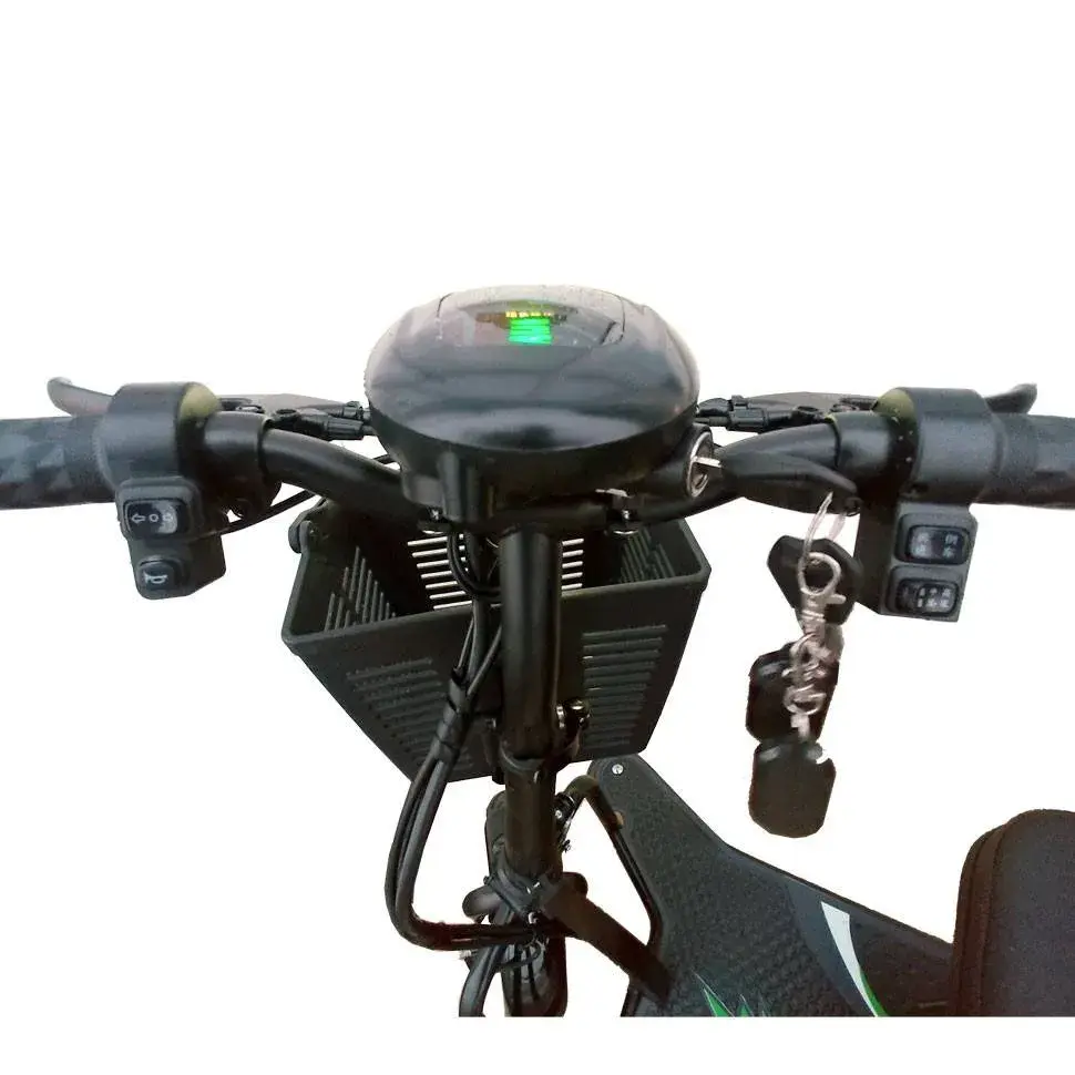 Не большая, комфортная модель трёхколёсного электросамоката с складным рулем и сидением. Он имеет достойные характеристики, удобен и прост в использовании, обладает большим запасом хода на одной зарядке.