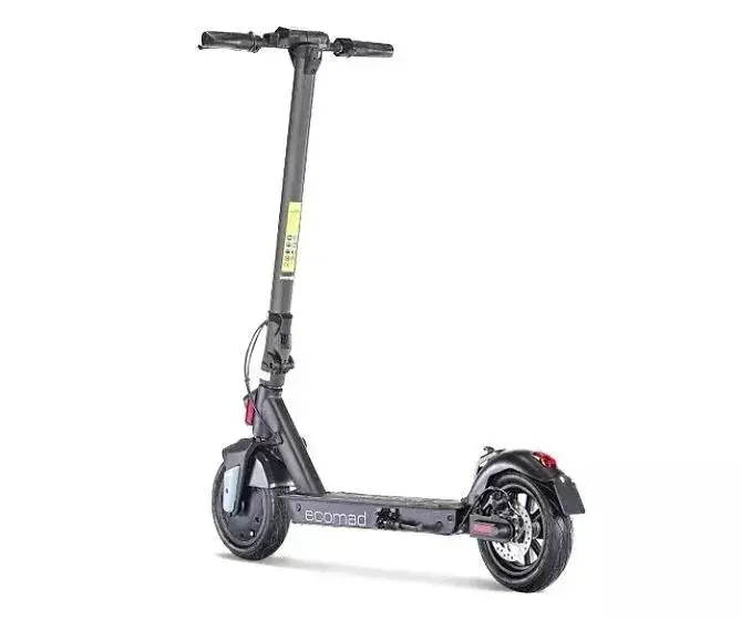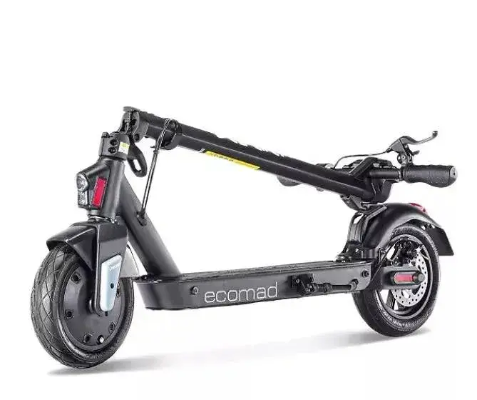 Легкий складной электросамокат для города, в котором сочетаются отличное качество и прекрасные характеристики. Рама выполнена из магниевого сплава, магниевые рамы по праву считаются самыми легкими, но при этом не уступают в прочности таким материалам как алюминиевый сплав или сталь. Отличительная черта такой рамы – способность сглаживать вибрации при езде, практически, как у рам из титана. За счет мотора 350 W обеспечивается максимальная скорость до 25 км/ч, аккумулятор 36V способен преодолевать до 30 км на одном заряде. ECOMAD оснащен передним и задним освещением LED, что позволит безопасно передвигаться в темное время суток, а степень защиты IPX4 обеспечит защиту от прямых брызг.
