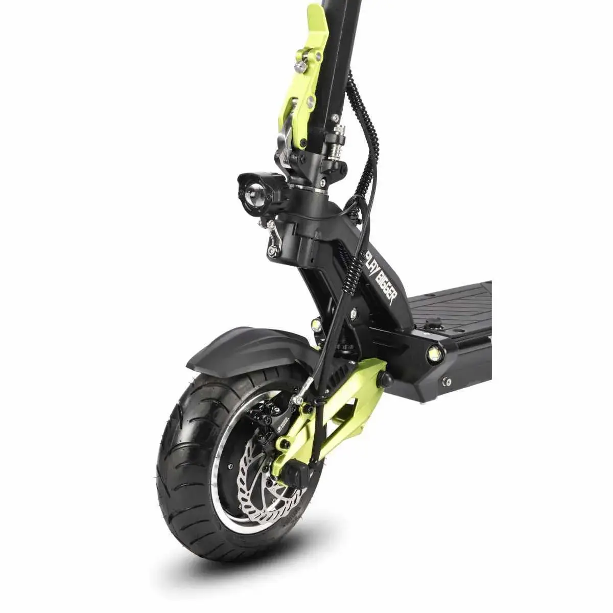 • Усиленный трехэлементный мотор, благодаря чему разгоняется до 75 км/ч;