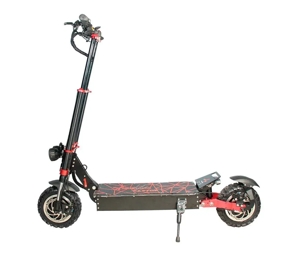 Электросамокат YOKAMURA Raptor 11 - это абсолютная новинки 2020 года создана высококвалифицированными инженерами компании. Все отточено до мелочей, надежная подвеска в виде мотовилки, отлично справляется с любыми не ровностями и при любых скоростях. Мощные новые мотор колеса по 3000w каждое, имеет не повторимую начинку из новейших магнитов шириной 6 см, при помощи которых максимальная скорость которую может набрать самокат является свыше 90 км/ч. Набор скорости стал очень плавный и управляемый при помощи умных мозгов самоката, в нем установлены самые новые синусные контролеры по 45 ампер каждый, что является на сегодняшний день трендом в индустрии электротранспорта.