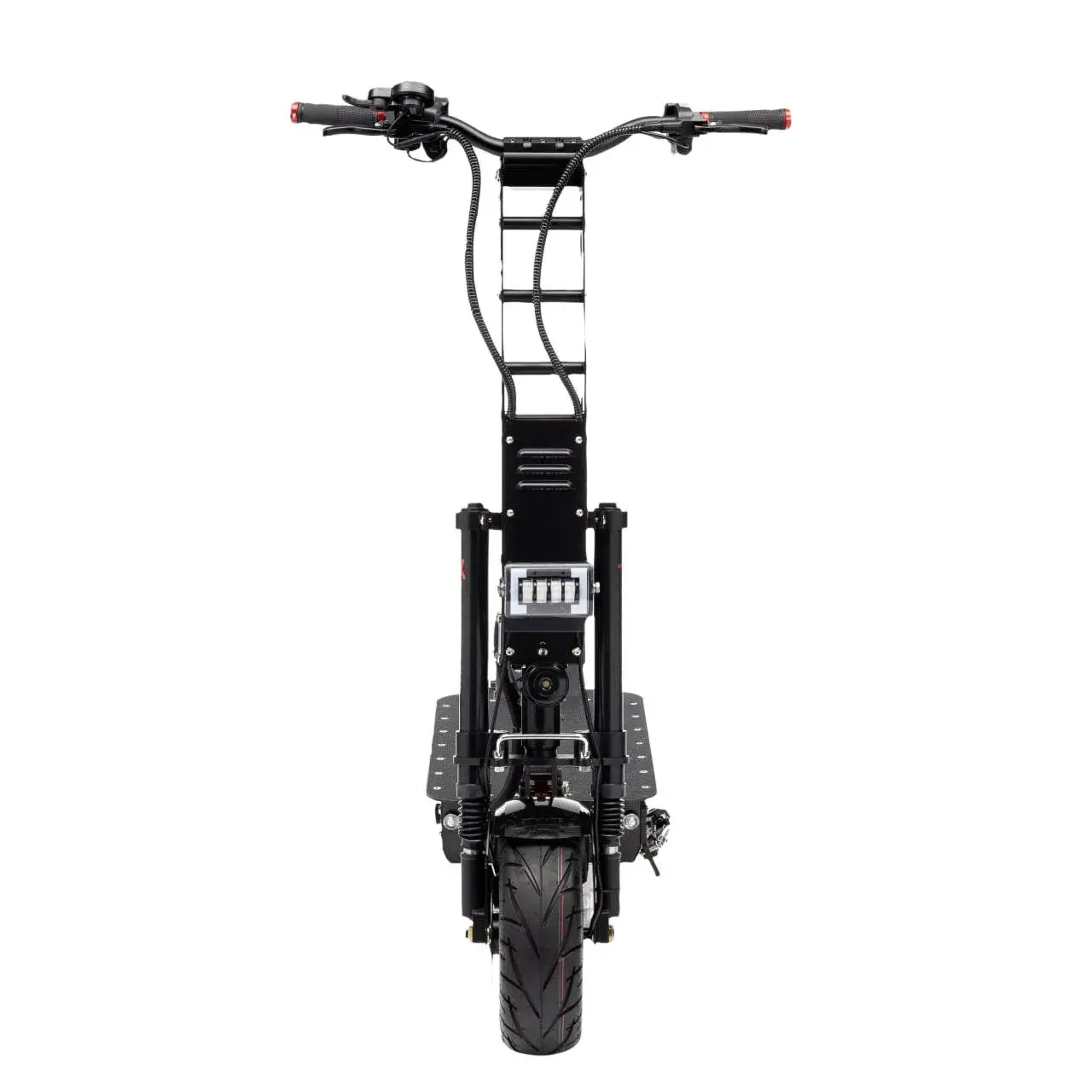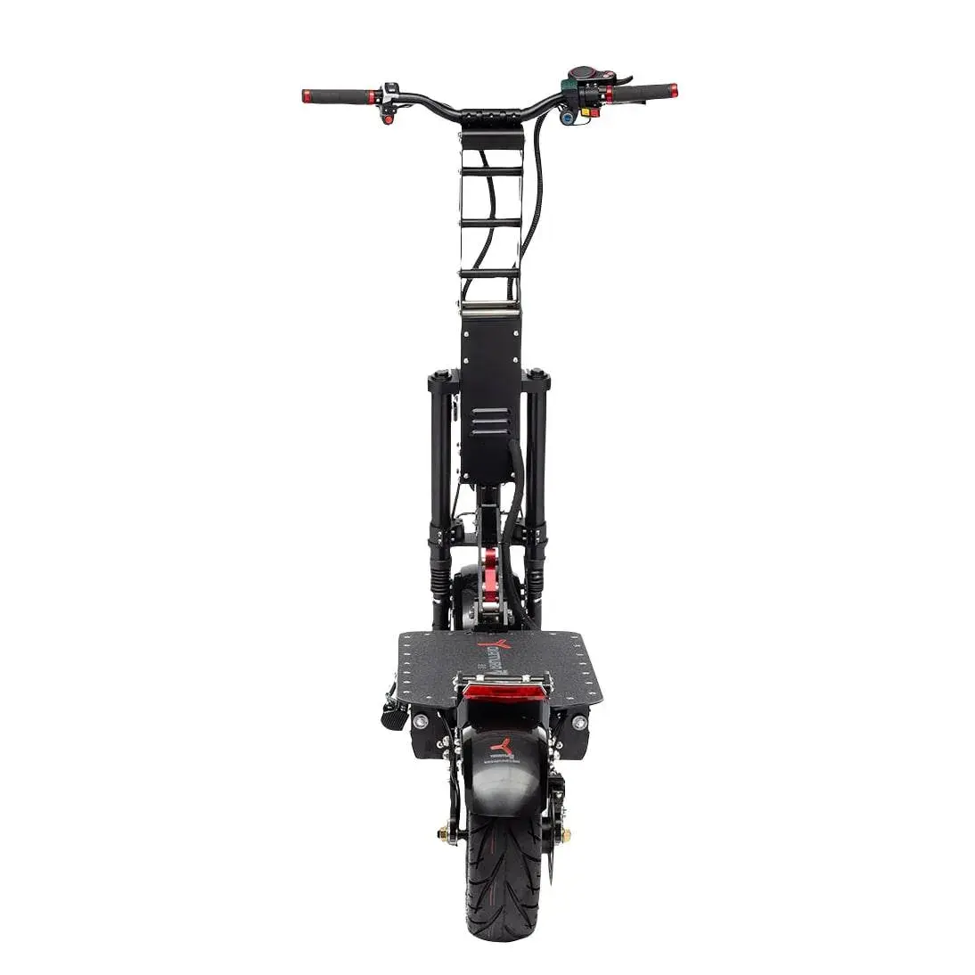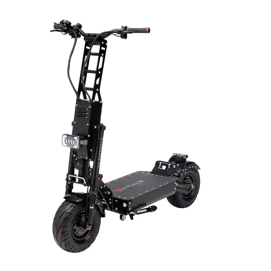 - Имеет двойную переднюю вилку и мощный двигатель суммарной мощностью 6000 Вт;