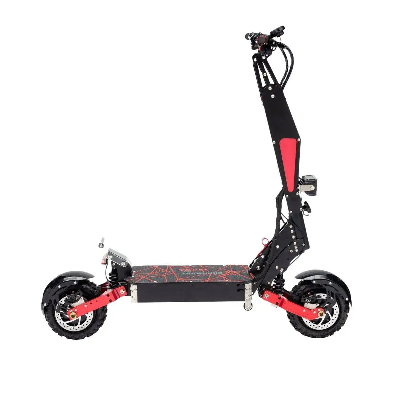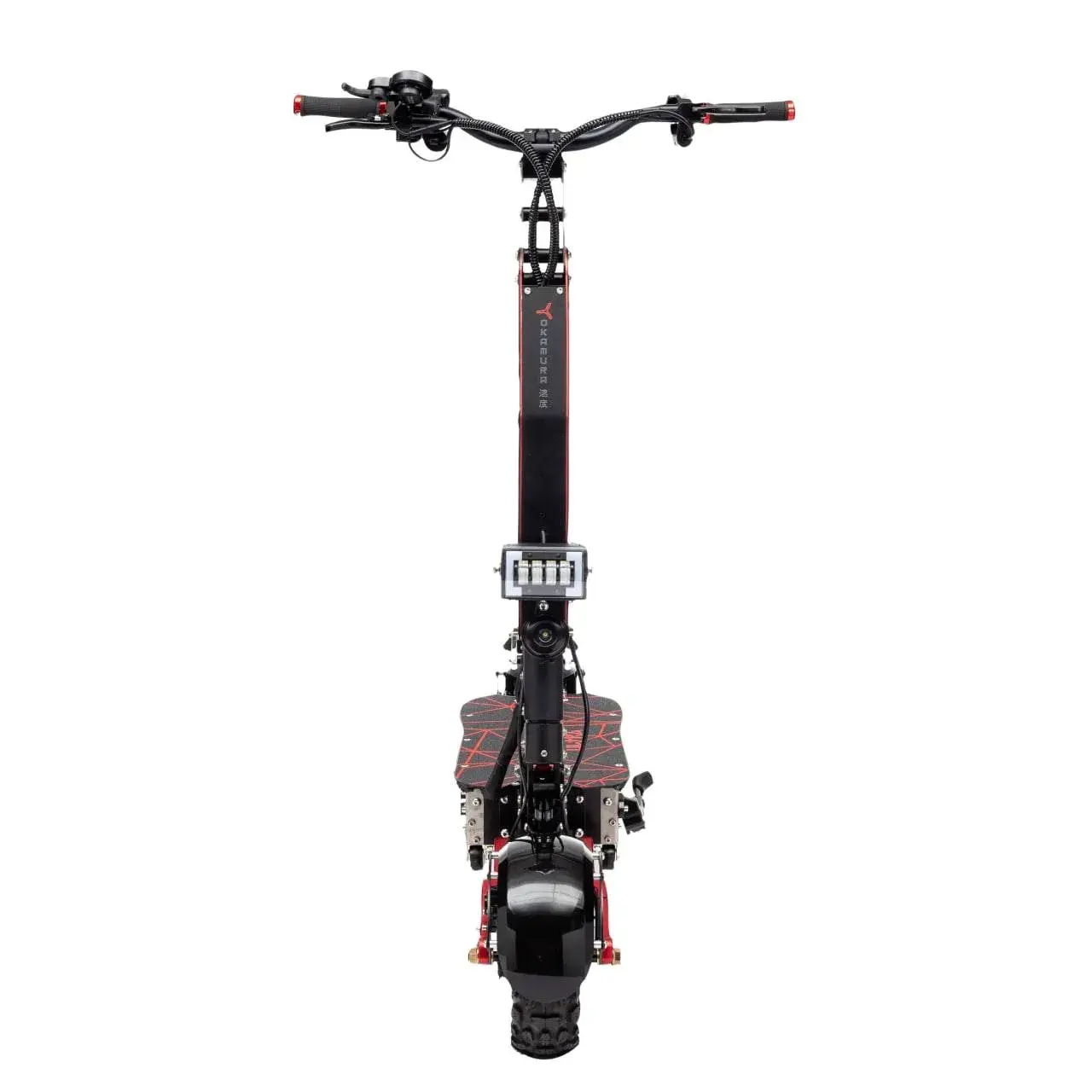 Номинальный запас хода самоката составил 100 км. при пиковом разгоне до 60 км/ч. Максимальная скорость самоката достигает 80 км/ч. Самокат отлично покажет себя на всех типах покрытий.