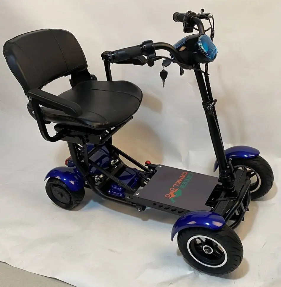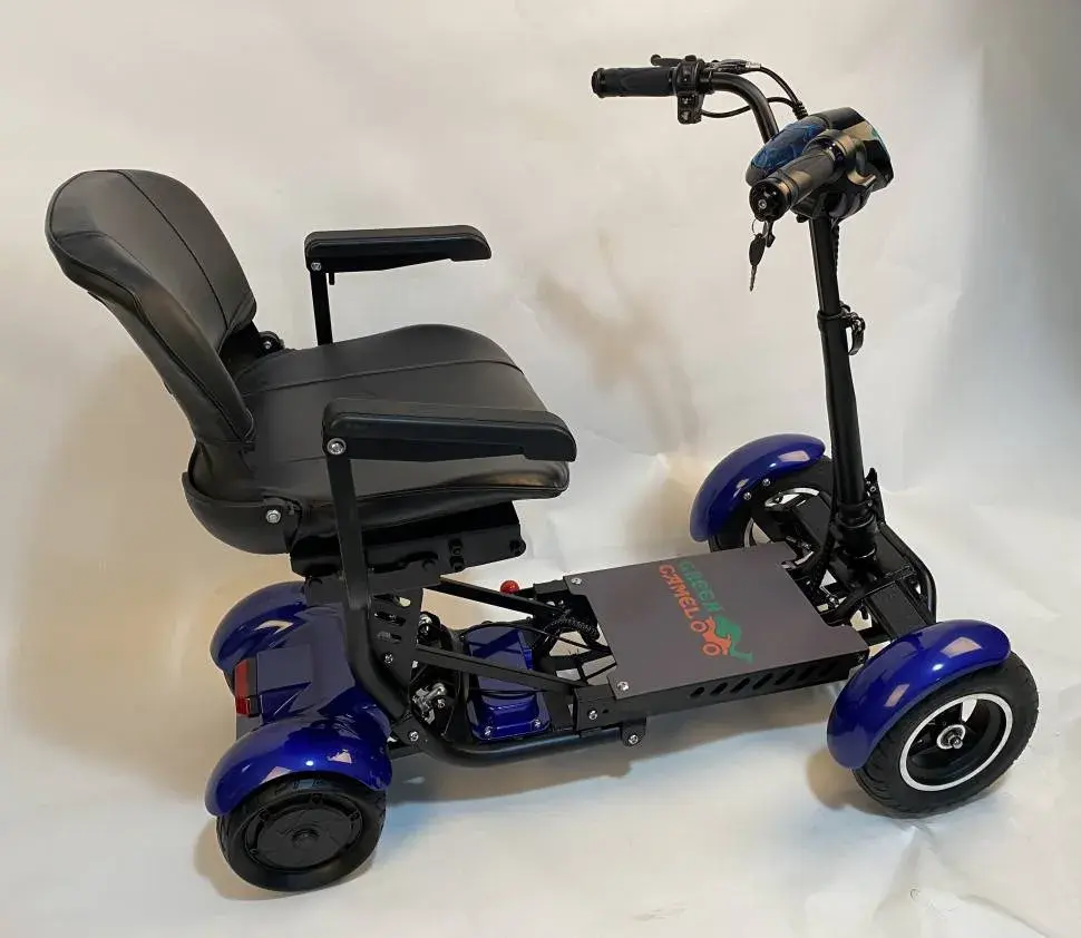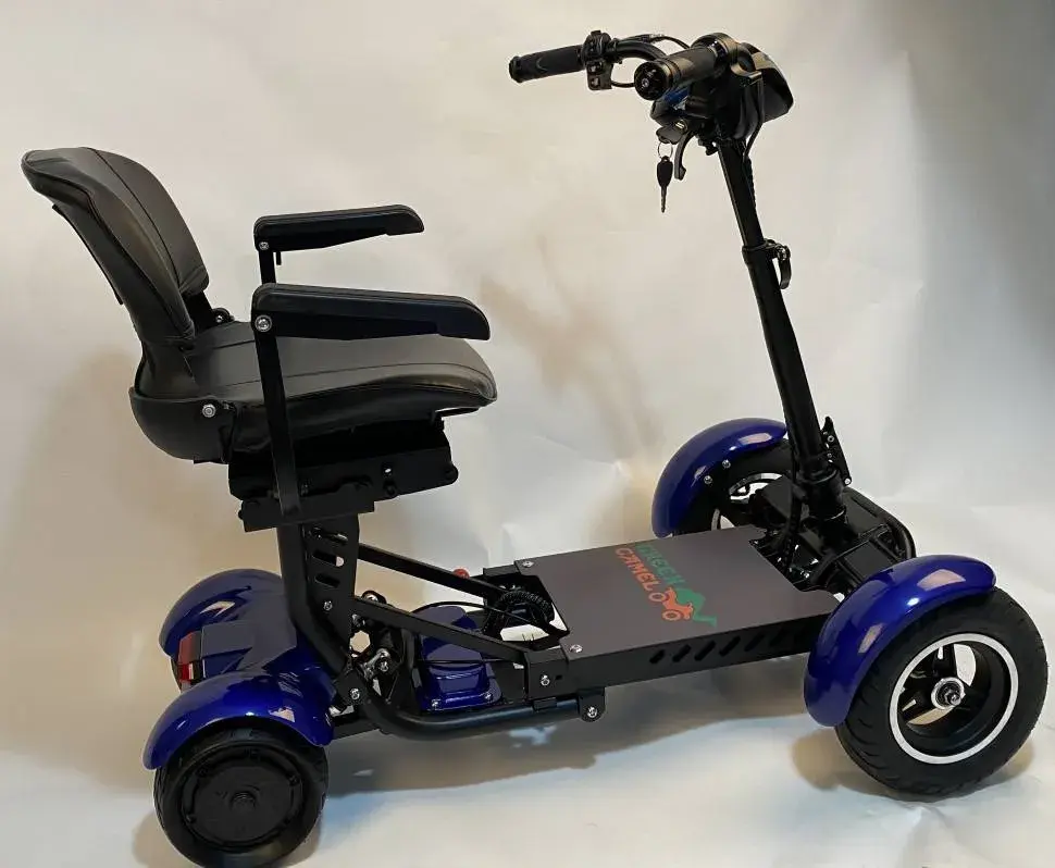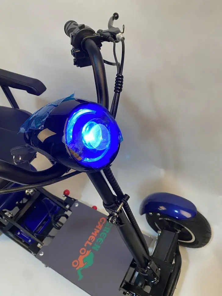 Электротрицикл GreenCamel Colt 801 (36V 2x400W задние мотор-колеса) предназначен для комфортного передвижения маломобильных групп населения на дорогах с плохим покрытием (грунт, песок, щебень). Модель Кольт 801 мощнее предыдущей модели 501 и оснащена FAT колёсами с высоким и широким профилем для повышенной проходимости. ВНИМАНИЕ: не является инвалидным креслом! Не подходит для неходячих больных! Оборудован комфортным креслом и широкой площадкой для удобства размещения взрослого человека. Движение вперёд-назад осуществляется поворотом рукоятки газа, торможение сбросом газа и рычагом тормоза на левой ручке. На руле установлены кнопки звукового сигнала, света, переключения скоростей и включения заднего хода R. Корпус светодиодной фары также является информационным LED-дисплеем, выводящим данные по остатку заряда батареи. За передвижение отвечают два задних мотор-колеса общей мощностью 500Вт и развивающих скорость до 18 км/ч при максимальной загрузке в 150 кг. Запас хода до 15 км. Для удобства перемещения электросамокат компактно складывается в 2 раза и катится за ручку на передних колёсах сравнимо с чемоданом средних размеров (при складывании сиденье необходимо отстегнуть от самоката). У данной модели отличная курсовая устойчивость в поворотах благодаря геометрии колёс и низкому центру тяжести!