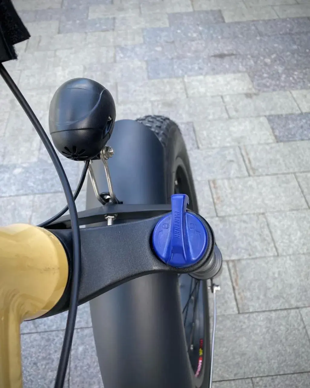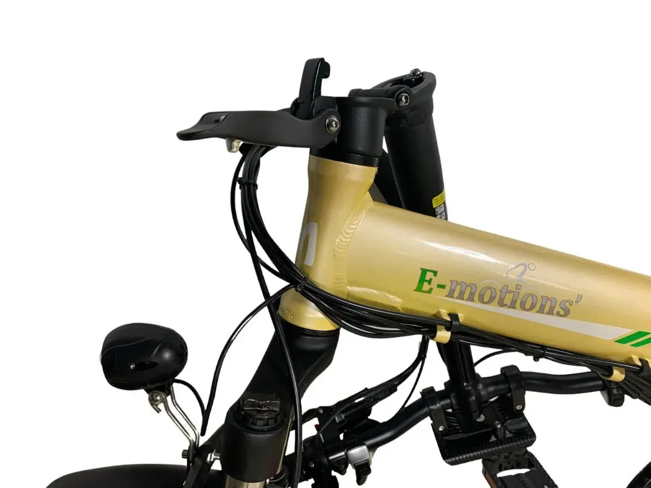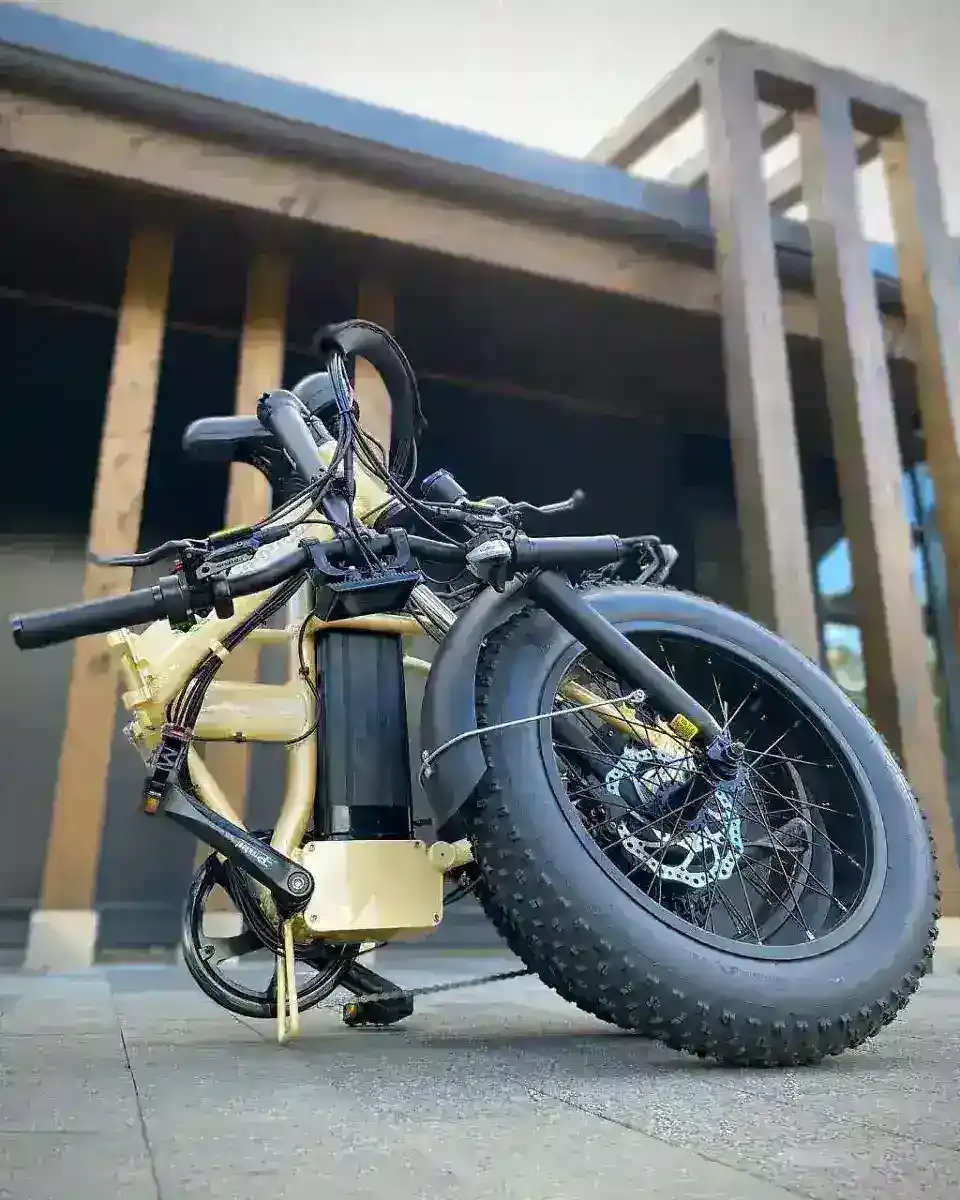 Заднеприводной электробайк оснащён алюминиевой рамой, быстросъёмной аккумуляторной батареей, в результате чего велосипед может свободно на одном заряде преодолевать расстояния до 40 км в режиме PAS со скоростью до 40 км/час. Кроме этого, колёса диаметром 20 дюймов отлично едут по асфальтированной дороге, грунтовке, брусчатке. Тормоза на переднем и заднем колесе дают меньший тормозной путь при экстренном торможении. Компактность – ещё одно преимущество этого фэтбайка. Складная модель с лёгкостью поместится в багажнике автомобиля, кладовке. Удобство и комфорт для поездок в ночное время обеспечивает мощный светодиодный фонарь спереди, среди других опций следует отметить регулированный руль, крылья и боковую подножку.