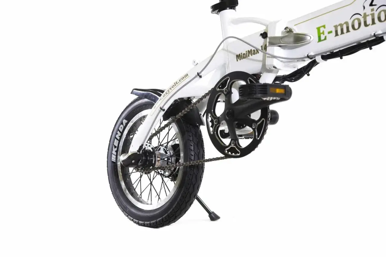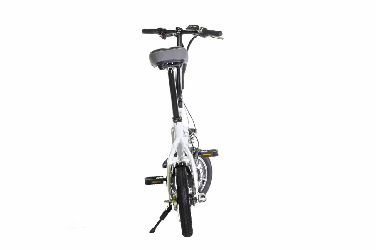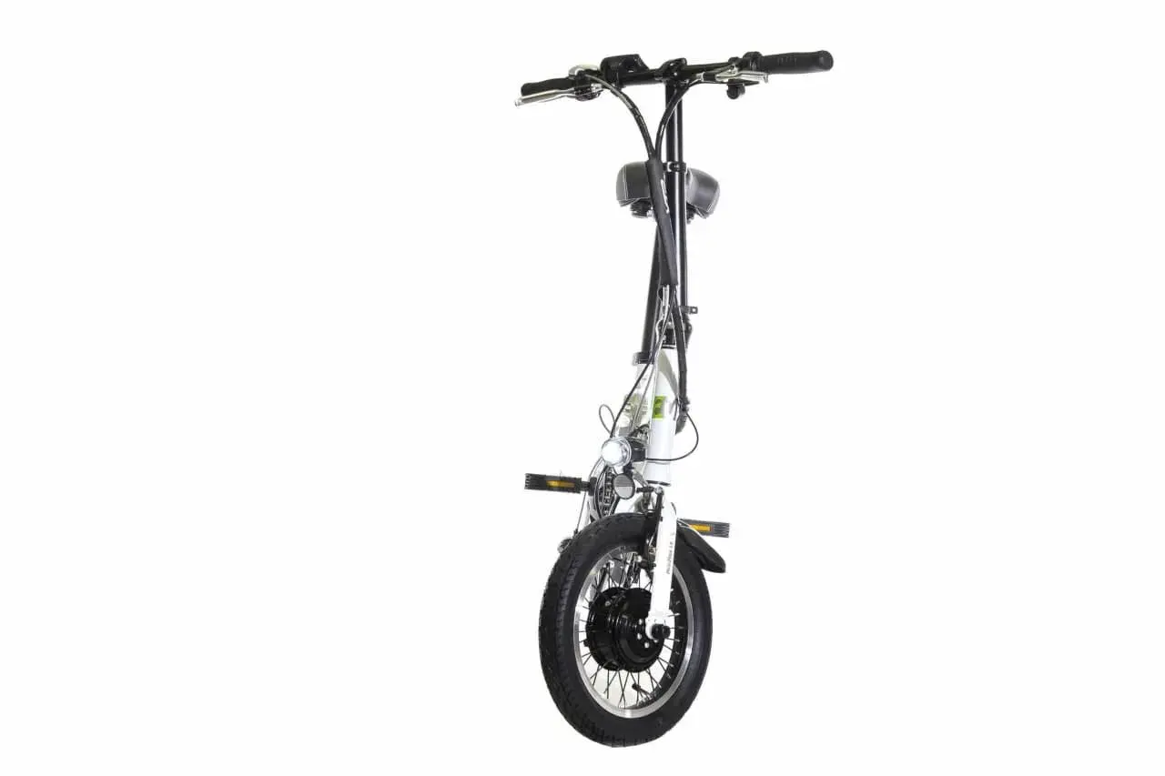 Модель оснащена передним редукторным мотор-колесом мощностью 350 W, быстросъёмным литиевым аккумулятором. Такие характеристики позволяют свободно на одном заряде батареи преодолевать расстояния до 20 км в 3-уровневом режиме PAS и разгоняться до 30 км/час. Мощности двигателя хватает и на крутой подъём, и на длительную поездку по трассе. Легкие 14-дюймовые колёса на широких шинах Kenda обеспечивают отличную динамику, уверенное маневрирование и легко держат дорогу. Электробайк компактен, оснащён надёжными тормозами v-brake, что делает езду более комфортной и безопасной. К прочим достоинствам модели можно отнести наличие режима круиз-контроля.