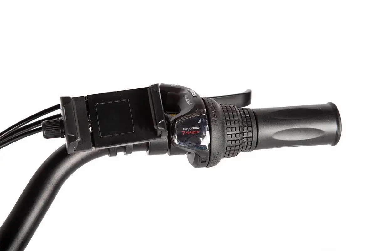 Функциональности и практичности добавляем задний металлический багажник с прижимной скобой и передняя светодиодная фара. На руле предусмотрено крепление для смартфона. А управлять скоростью можно как при помощи ручки газа, так и вращая педали с ассистентом.