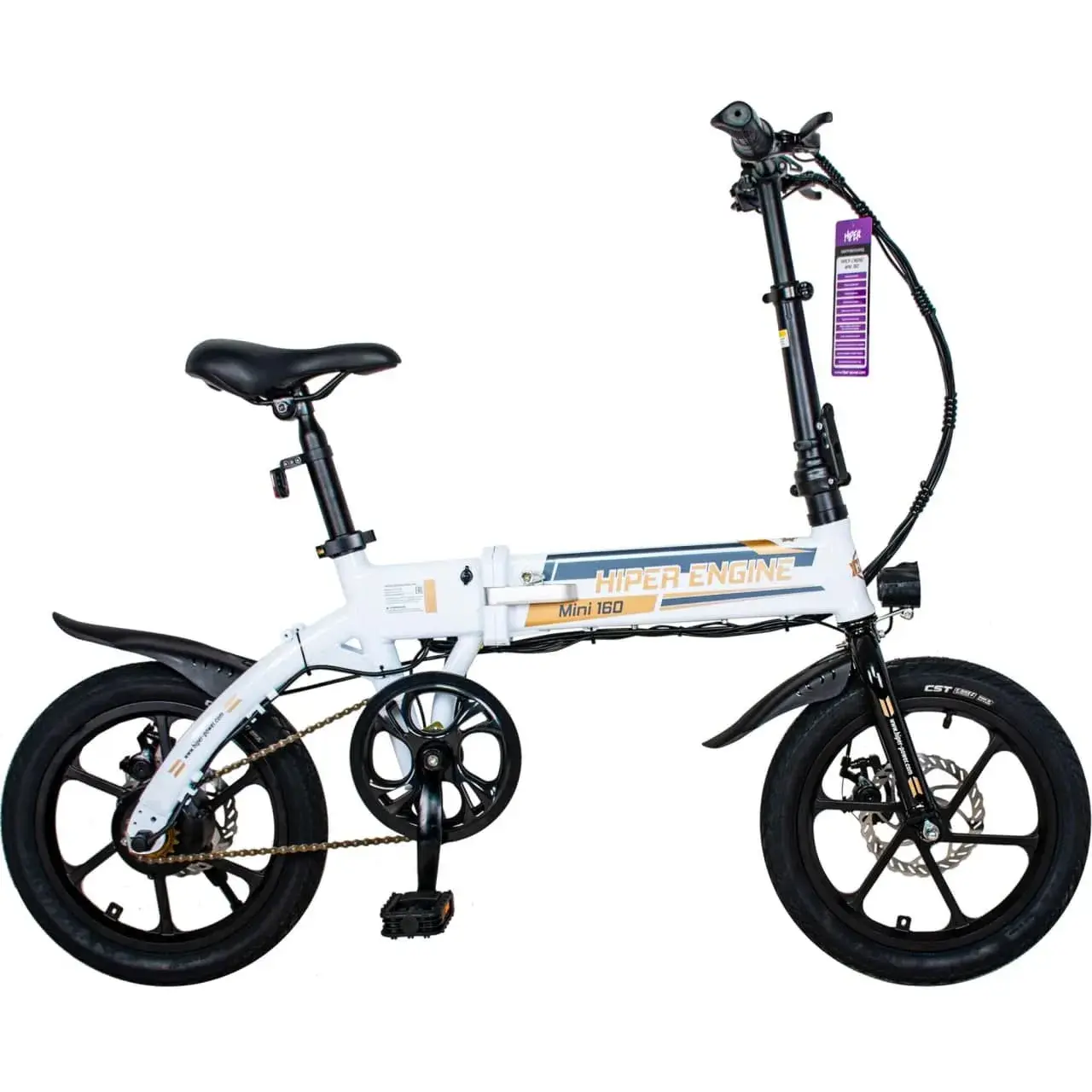 HIPER ENGINE MINI 160 Pearl – компактная модель городского электровелосипеда, которую удобно хранить и перевозить в транспорте, благодаря складной раме, выполненной из алюминиевого сплава. Легкий вес модели (всего 18,7 кг) позволяет справиться с ним даже подростку. Несмотря на свои миниатюрные габариты, велосипед выдерживает до 130 кг нагрузки.
