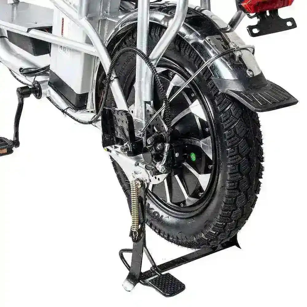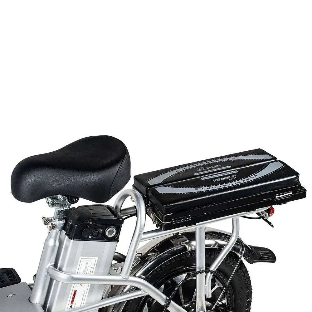 - Корзинка на руль в комплекте. Т.е. электровелосипед оснащен двумя местами для перевозки грузов.