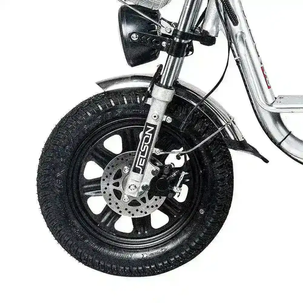 Двигатель электровелосипеда мощностью 500 Вт расположенный в заднем колесе разгоняет электровелосипед до 55 км/ч. 500W это номинальная мощность, пиковая мощность электровелосипеда 1200W. Батарея 60V/20Ah позволяет на полной заряде проехать до 80 километров при лучших условиях использования. Батарея собрана из литий-ионных аккумуляторов. Надувные колеса электровелосипеда Jetson Monster 16 дюйм достаточны для езды по городу, вкупе с передним амортизатором дают комфортабельные условия поездки.
