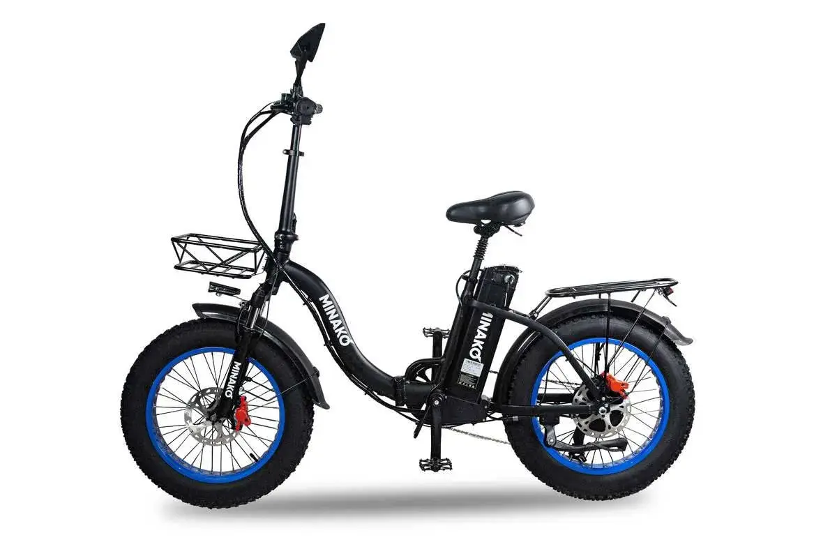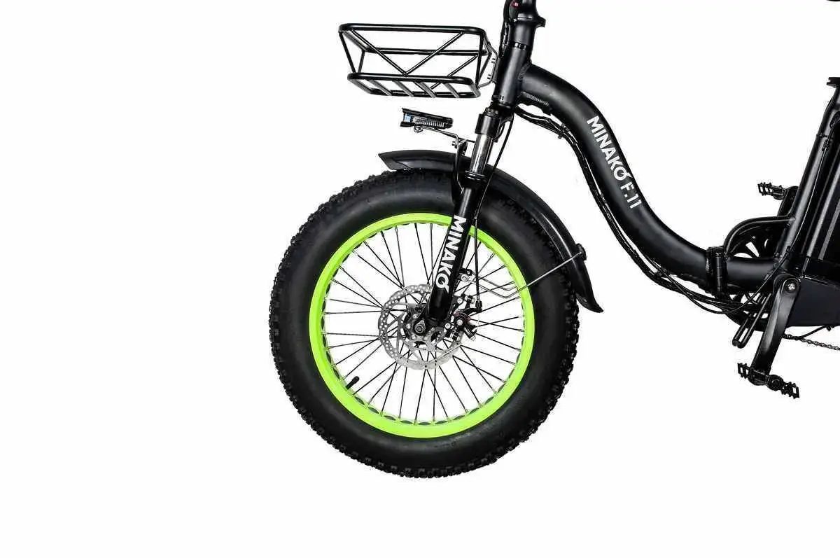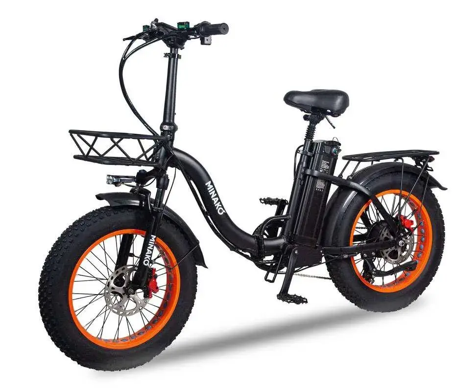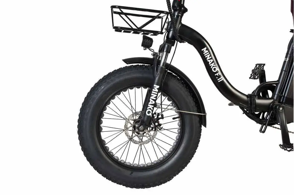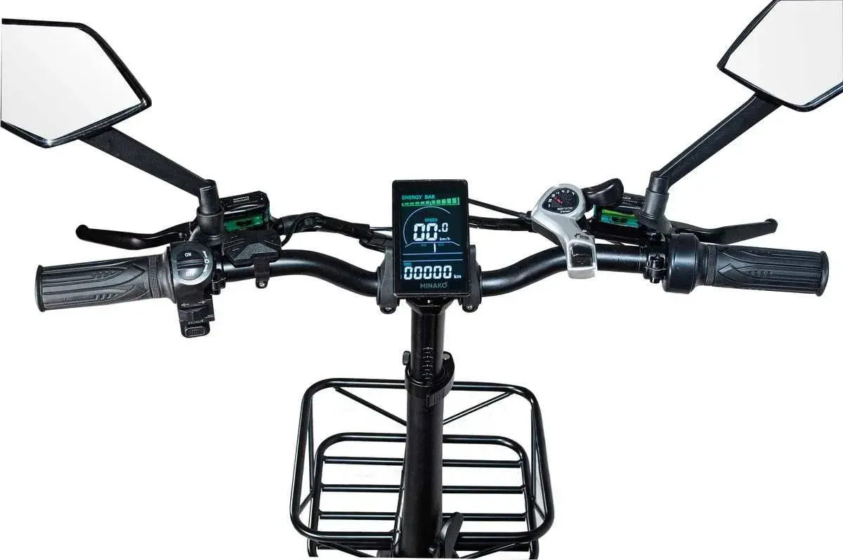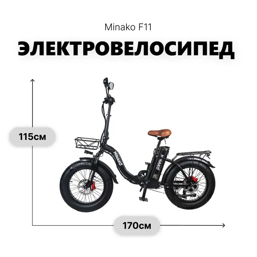 Электровелосипед Minako F11 - стильный электрофэтбайк для городского передвижения. За счет низкой конструкции рамы будет удобен в использовании не только мужчинам, но и женщинам, подросткам и пожилым людям. Задний багажник и передняя корзинка позволят перевозить небольшие грузы и личные вещи, что тоже является плюсом.