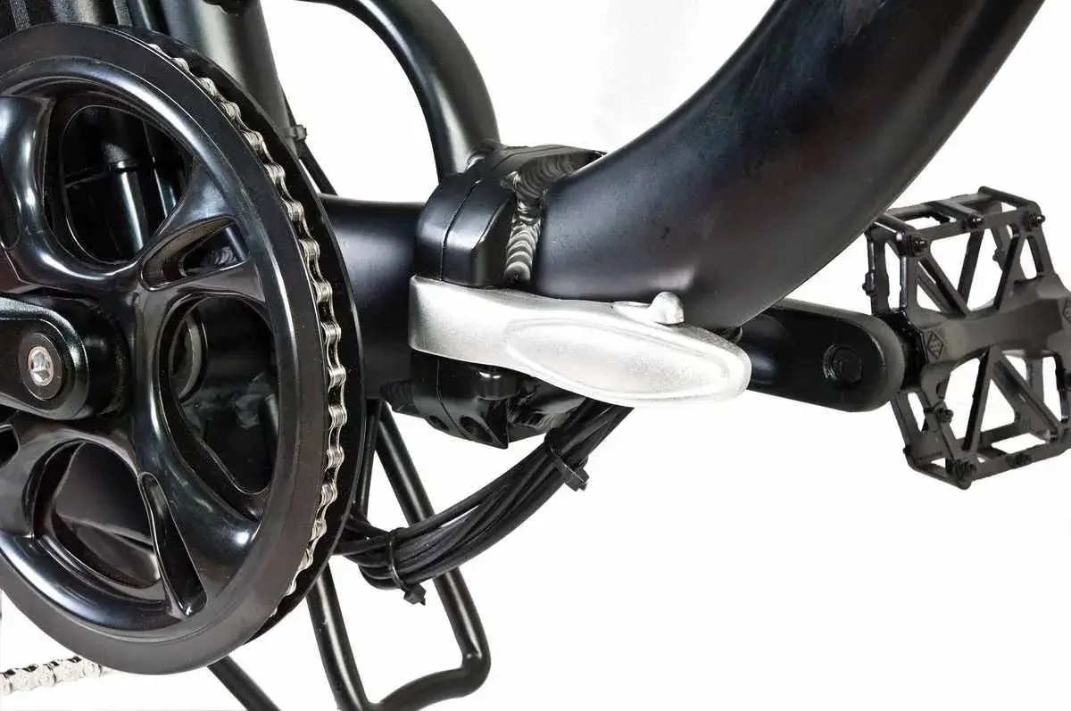 Электровелосипед укомплектован мотором на 500W, который способен разогнать его до 50 км/ч. Аккумулятор повышенной емкости позволяет проезжать на одном заряде до 50 км. Передний амортизатор сгладит неровности на пути и сделает поездку более комфортнее. Дисковые механические тормоза обеспечат надежное торможение в различных ситуациях, а передняя яркая фара осветит путь в темное время суток.