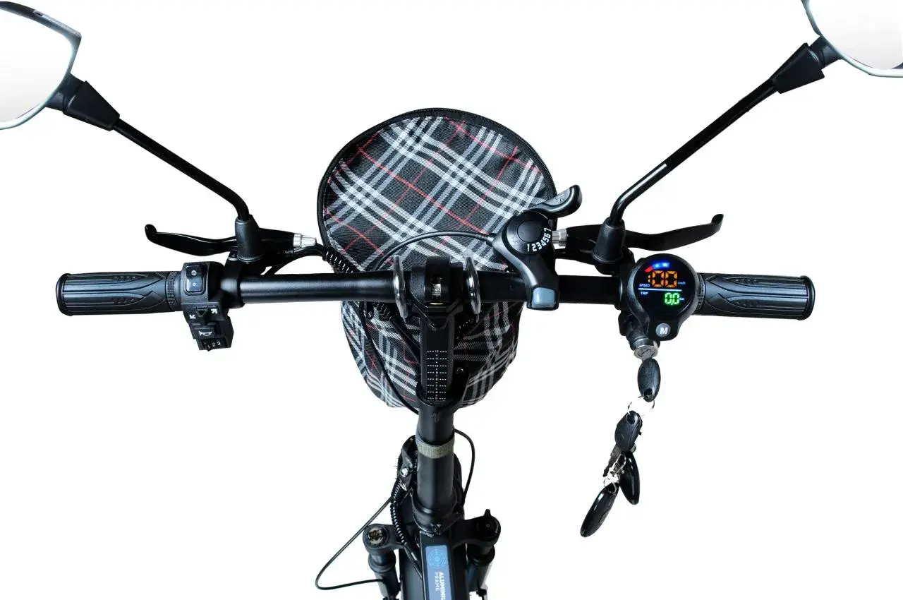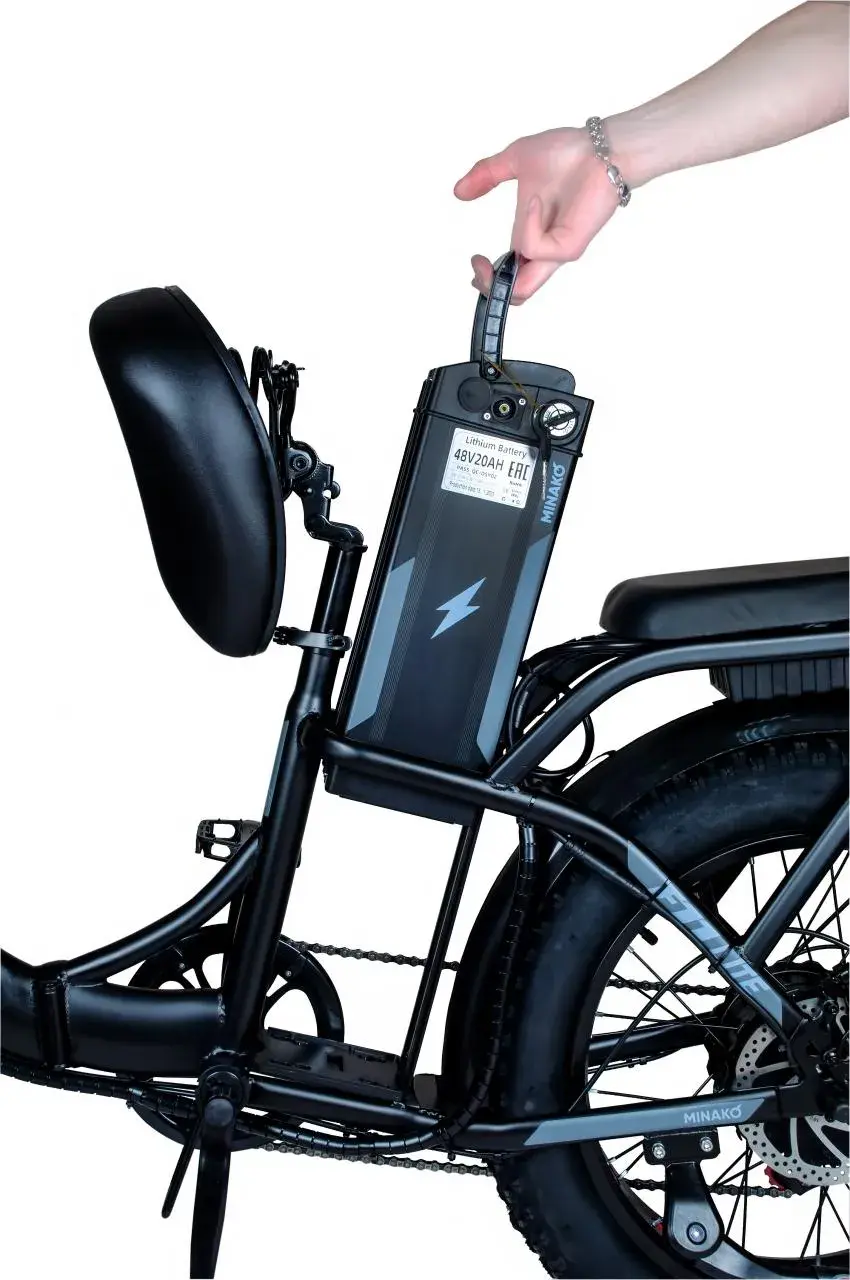 Электровелосипед Minako F11 Lite- стильный электрофэтбайк для городского передвижения. За счет низкой конструкции рамы будет удобен в использовании не только мужчинам, но и женщинам, подросткам и пожилым людям. Задний багажник и передняя корзинка позволят перевозить небольшие грузы и личные вещи, что тоже является плюсом.