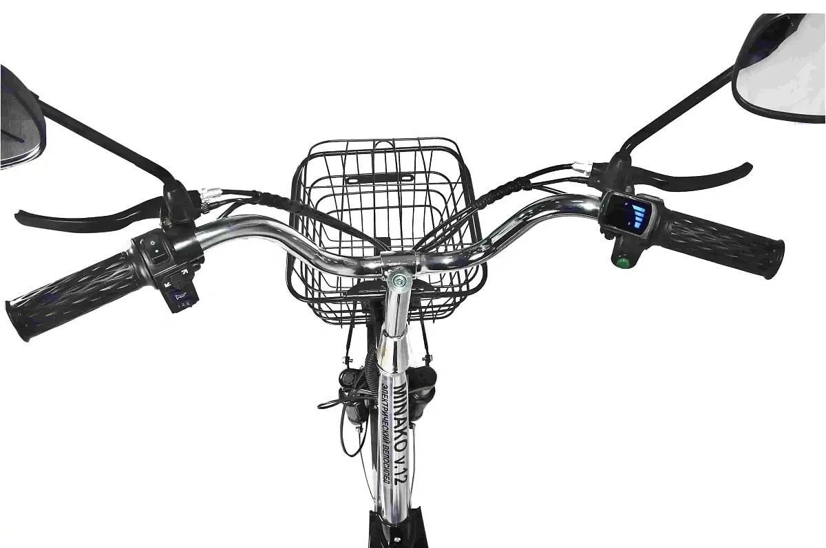 На этом электровелосипеде можно разместиться с грузом, суммарным с пользователем весом 140 кг. Для груза имеется довольно широкий багажник сзади, и корзина поменьше спереди. Именно благодаря этому данная модель будет хороша для курьеров. Minako V.12 - отличная замена скутеру, к тому же, для передвижения на нём нет необходимости в получении прав категории М (это не избавляет от необходимости знать ПДД).