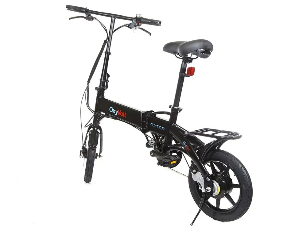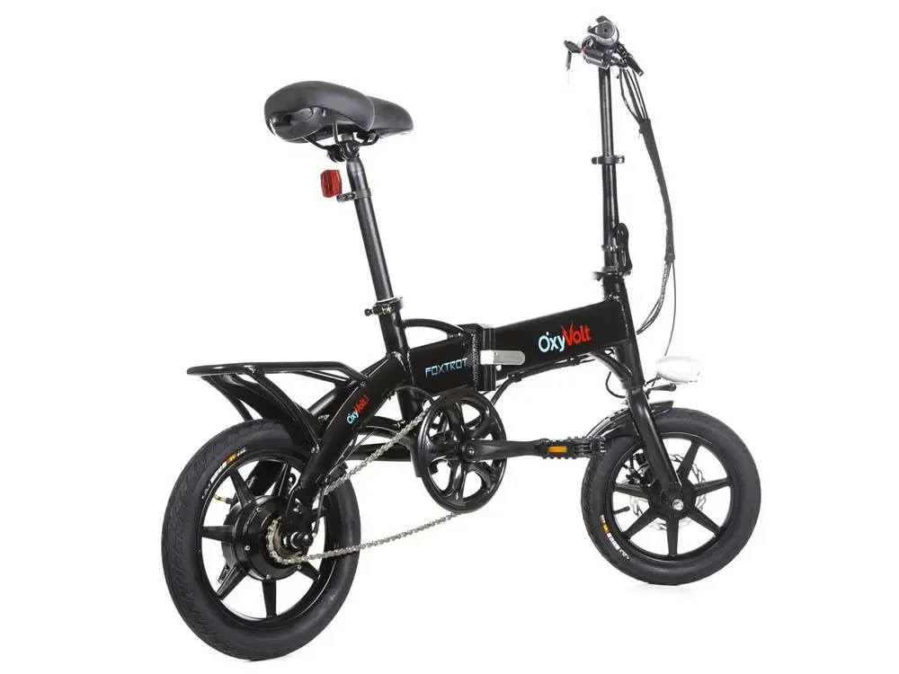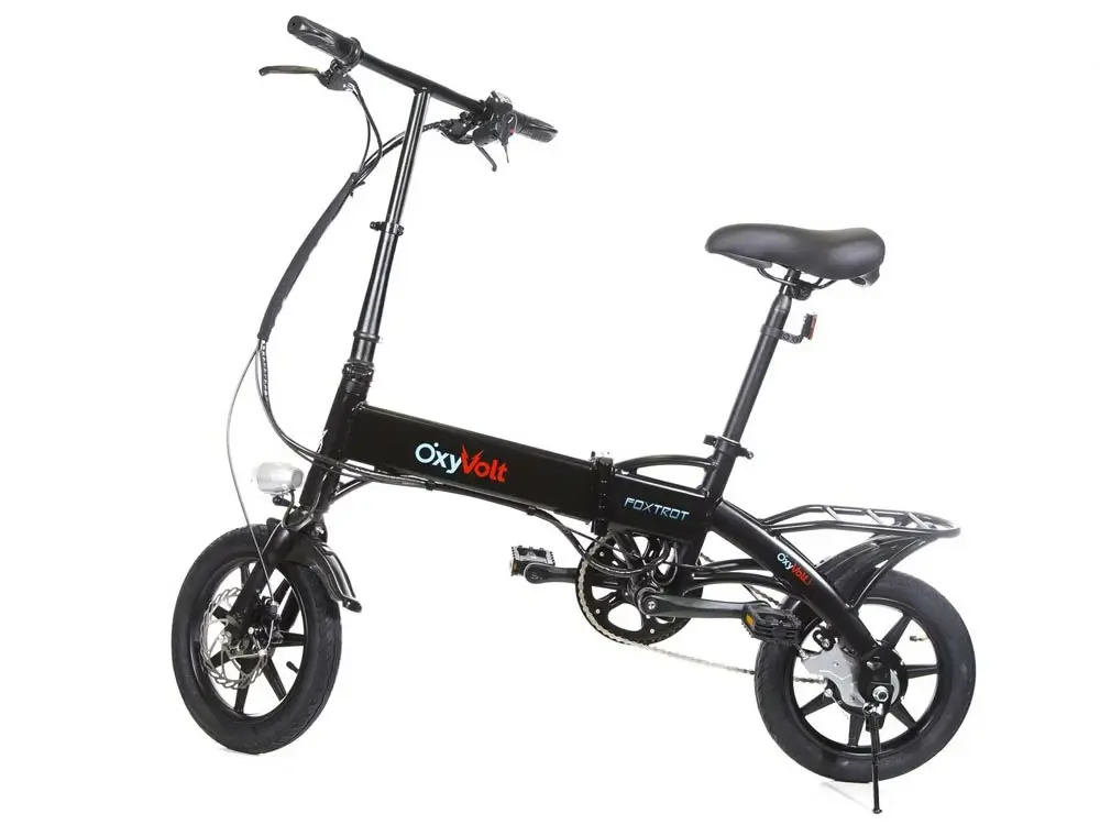 Велосипед оснащён рамой из алюминиевого сплава, аккумуляторной батареей, задним редукторным мотор-колесом мощностью 350W. Такие характеристики способствуют динамике разгона велосипеда до 35 км/час, при этом на максимальном заряде батарее можно проехать расстояние до 20 км. Небольшие размеры колёс (14 дюймов) позволяют легко маневрировать в потоке пешеходов, ездить узкими тропинками. Полностью складная рама - это гарант того, что Foxtrot не будет громоздкой ношей, а останется компактным другом в прогулках и путешествиях. Oxyvolt Foxtrot, как и все электровелосипеды, имеет три режима работы.