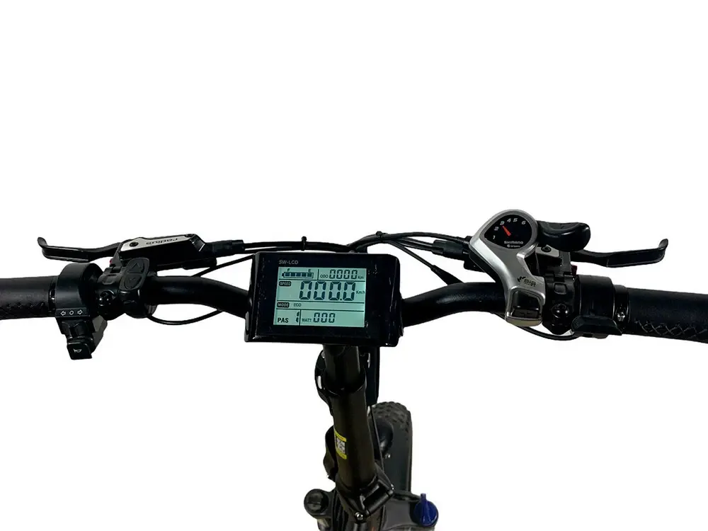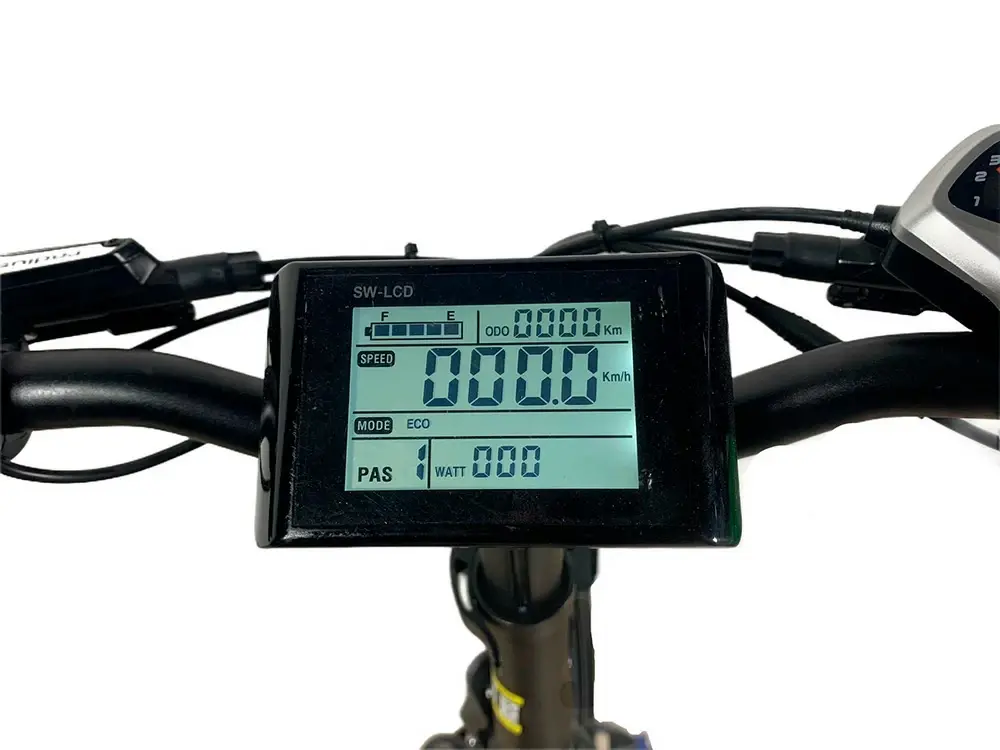 Обладает прочной складной аллюминевой рамой, рассчитанной на оптимальную нагрузку в 120 кг, но при этом весит всего 25 кг. Дисковые тормоза - надежное и качественное средство безопасности. Имеют большой срок службы, неприхотливы к погодных и дорожным условиям, не забиваются грязью и снегом, лучший контроль торможения. Легкая и прочная рама, выполненная из алюминия, обладает достойными весовыми и прочностными характеристиками. Амортизированная вилка принимает на себя все нагрузки, возникающие при торможении, а также повысит маневренность электровелосипеда. LCD-дисплей расположен в удобном месте над выносом, информацию о поездке и данные о работе системы на нем видно при любом освещении.